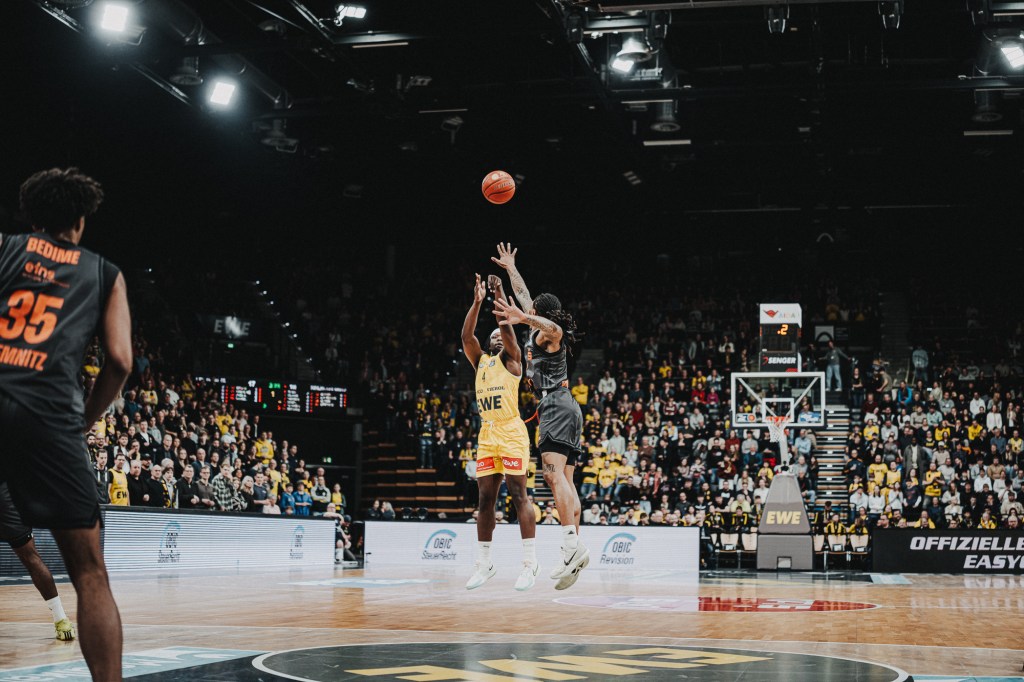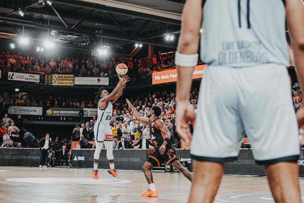 In einer Statistik sind die Oldenburger mit einigem Abstand Ligaspitze. Der Distanzwurf von der Dreierlinie fällt in dieser Saison unfassbar gut, mit 39,5 Prozent treffen sie 1,5 Prozentpunkte besser als der Zweitplatzierte, der FC Bayern Basketball, der bei 38 Prozent liegt. In den vergangenen vier Spielzeiten gab es nur eine Mannschaft, die eine bessere Quote als 39,5 Prozent von der Dreierlinie erreicht hat und das war in der Saison 2023/24 ebenfalls der FC Bayern Basketball mit Spielern wie Niels Giffey, Andreas Obst, Isaac Bonga, Sylvain Francisco oder Carsen Edwards.